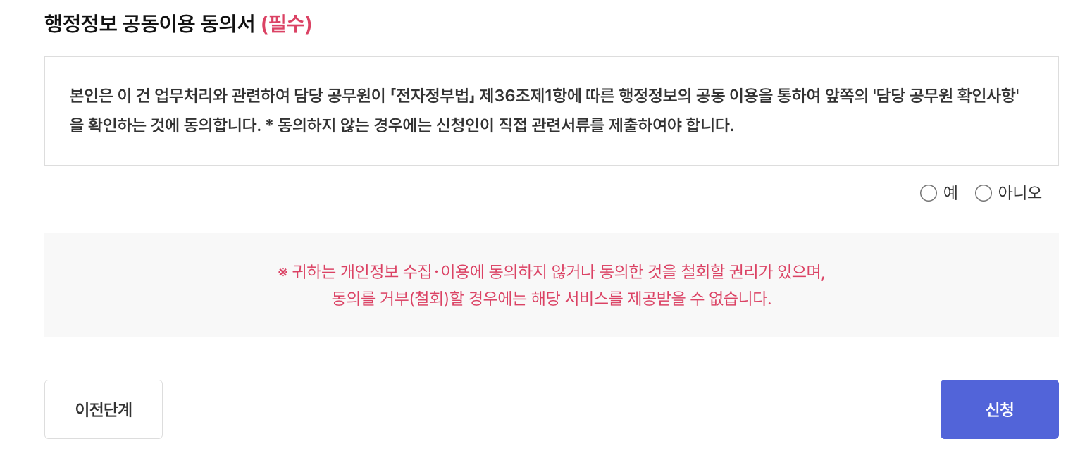 ④ 동의 및 신청