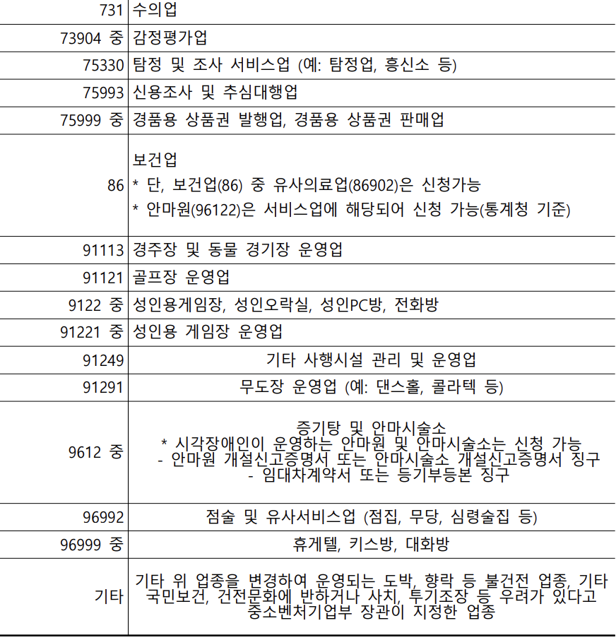 (5) 소상공인 정책자금 융자제외 대상 업종