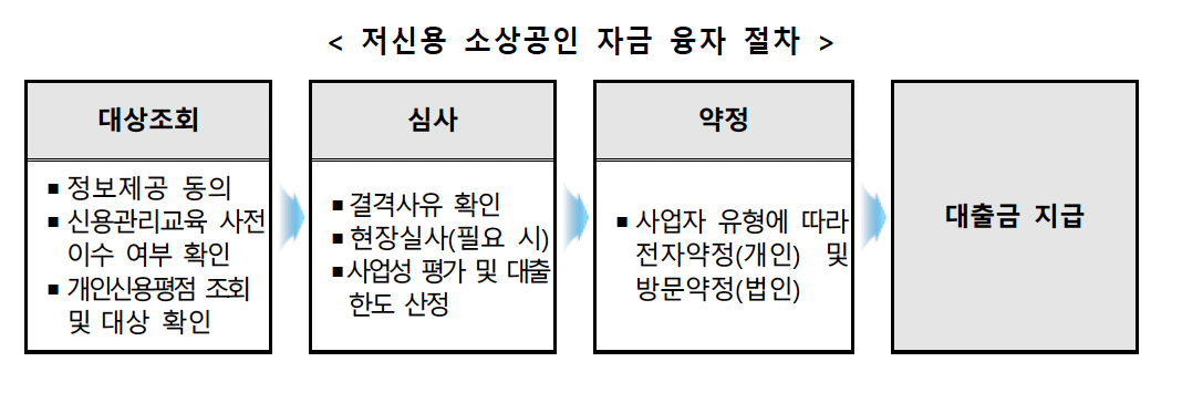 저신용 소상공인 대출 자격은 아래 사항을 모두 만족하는 소상공인이어야 합니다.